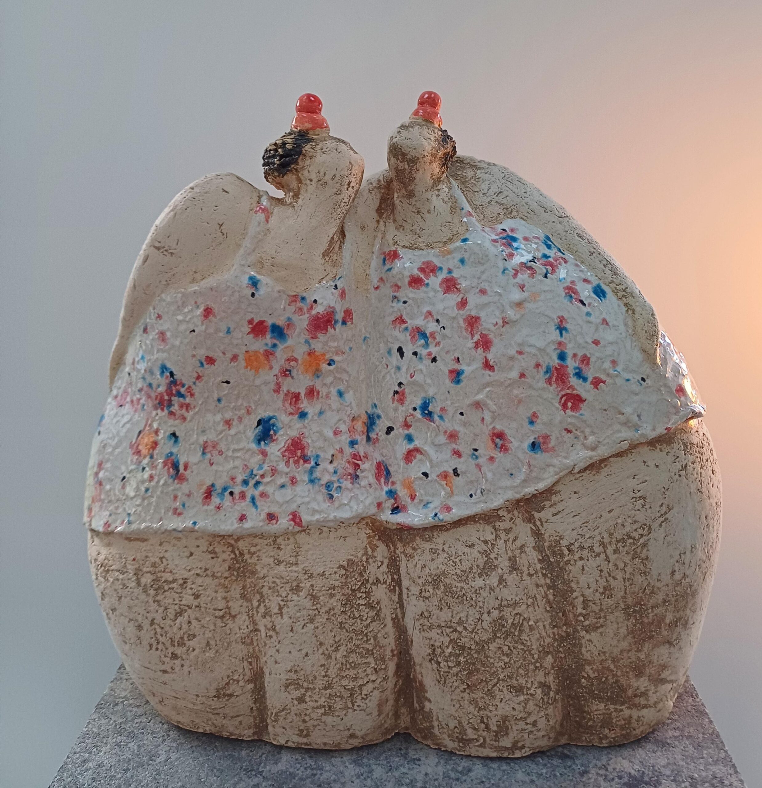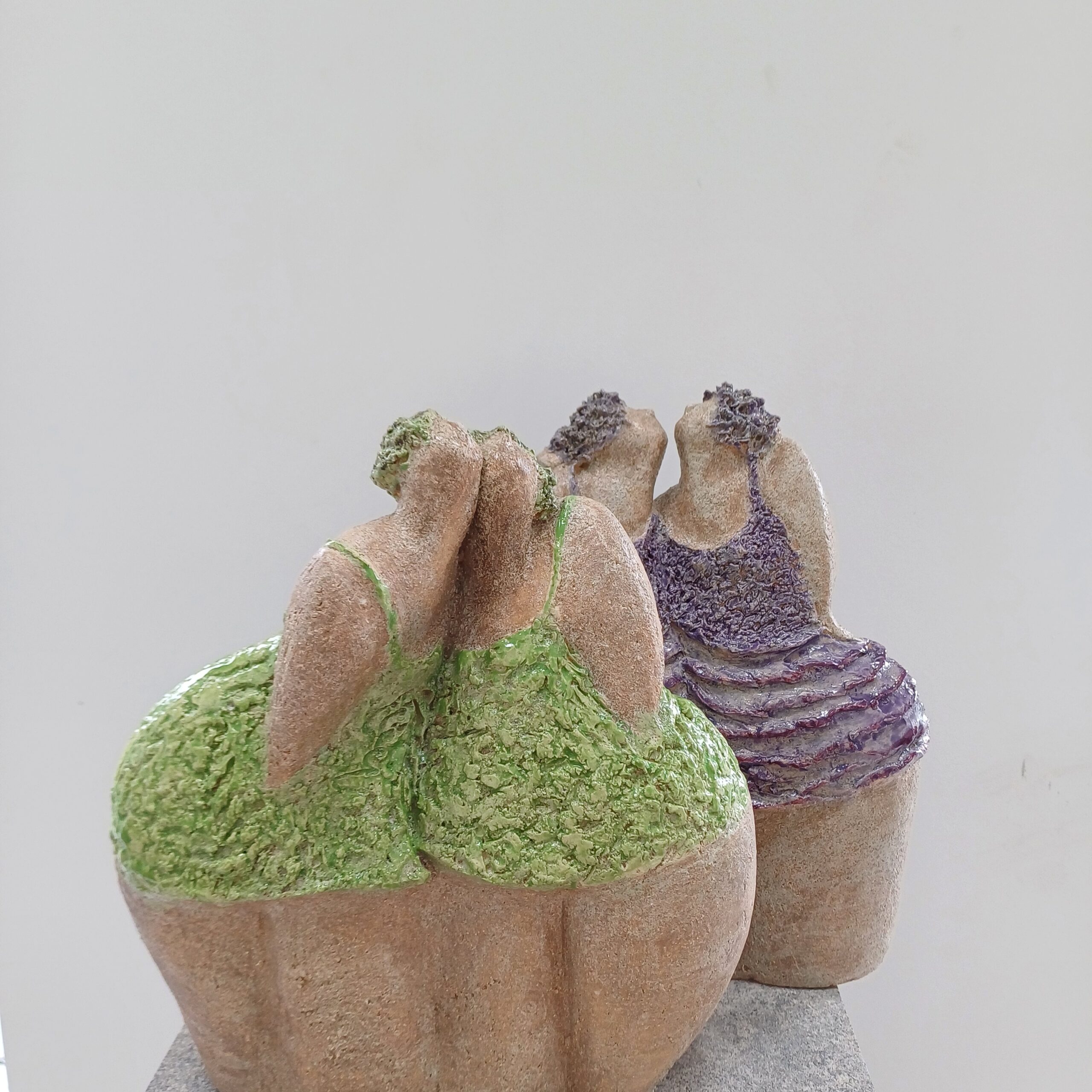 Ik word geïnspireerd bij het maken van mijn beelden door vrouwen en hun vriendschappen, die ik verbeeld in verschillende vormen met een vleugje humor. Met mijn handen in de klei zoek ik naar de ultieme vorm.